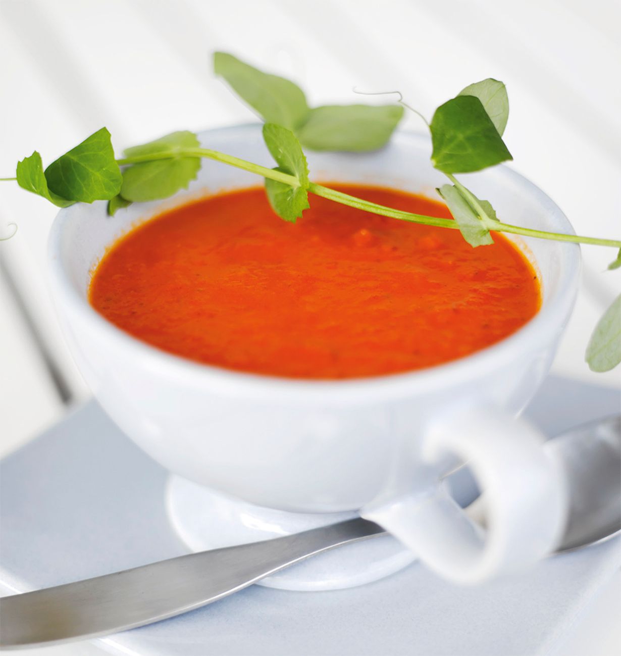 Mausteinen tomaattikeitto sopii niin helteelle kuin viileämpäänkin kesään.