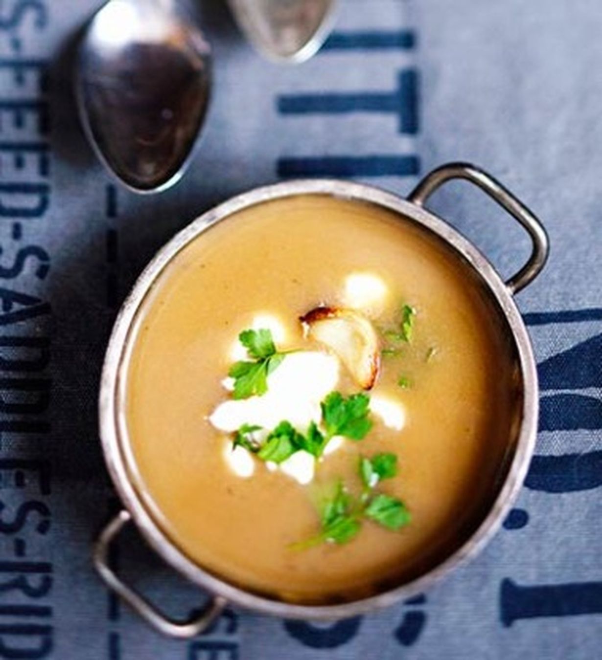 Vinkki! Ennen kuin lopuksi soseutat keiton, jätä muutama valkosipulinkynsi keiton koristelua varten.