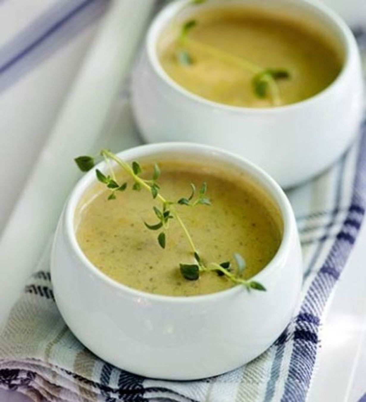minuuttia. Lisää lihaliemi, yrttien oksat ja halutessasi viini. Hauduta kannen alla 15 minuuttia. - Poista oksat ja soseuta keitto. Lisää liemeen paloiteltu brie ja anna sen sulaa hiljalleen, koko ajan hämmentäen.