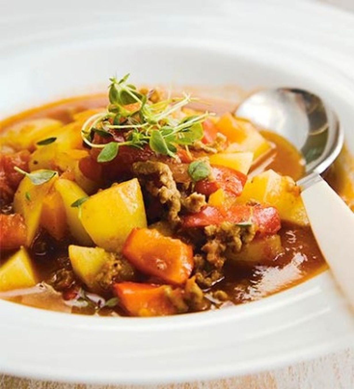 Kaada joukkoon jauhelihakastike, tomaattipyree ja lihaliemi. Kypsennä keskilämmöllä noin 15 minuuttia tai kunnes perunat ovat kypsiä. Lisää mausteet ja sekoita hyvin. Tarjoile pata hyvän maalaisleivän kanssa.