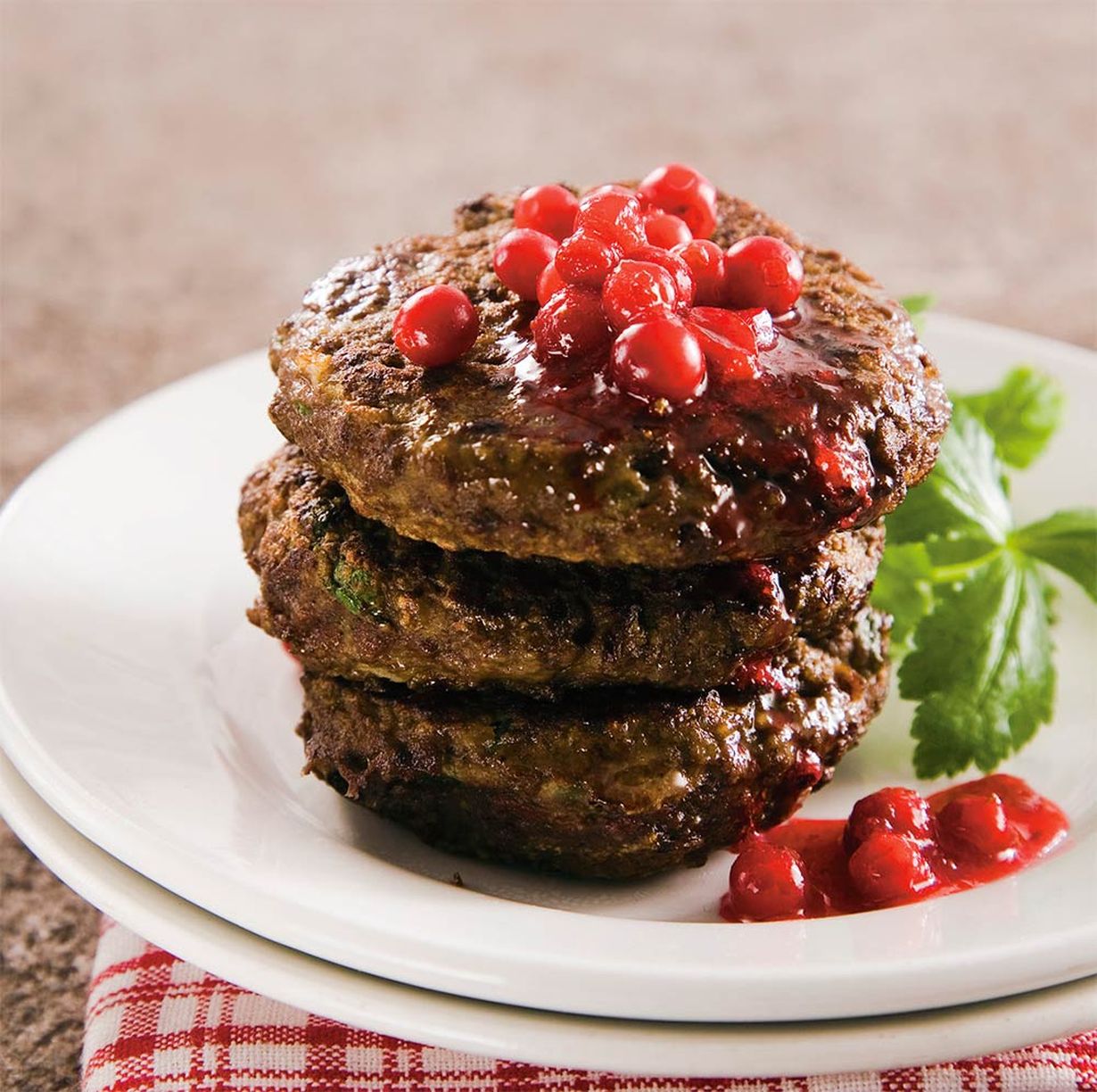 Tarjoa perunamuusin ja puolukkasurvoksen kanssa.