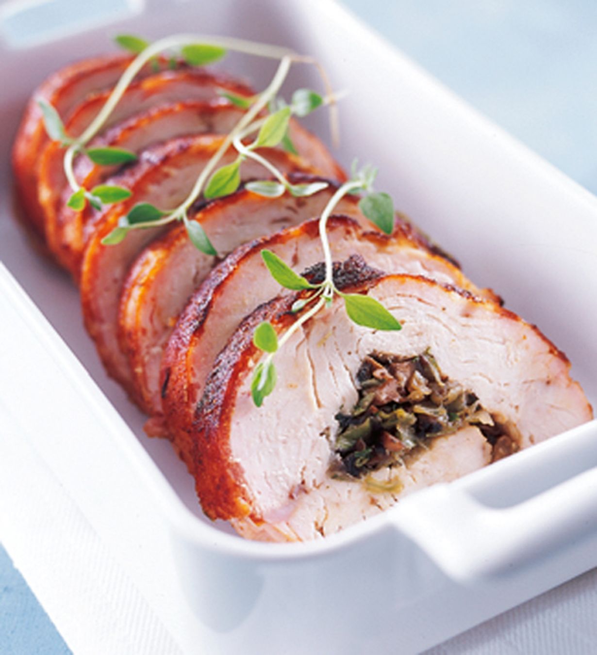 Vinkki! Voit paistaa rullan myös sellaisenaan. Sido se tällöin puuvillalangalla ja ruskista kauttaaltaan nopeasti paistinpannulla. Paista lopuksi uunissa kuten ohjeessa. Pinnasta tulee rapeampi ja kuivempi.