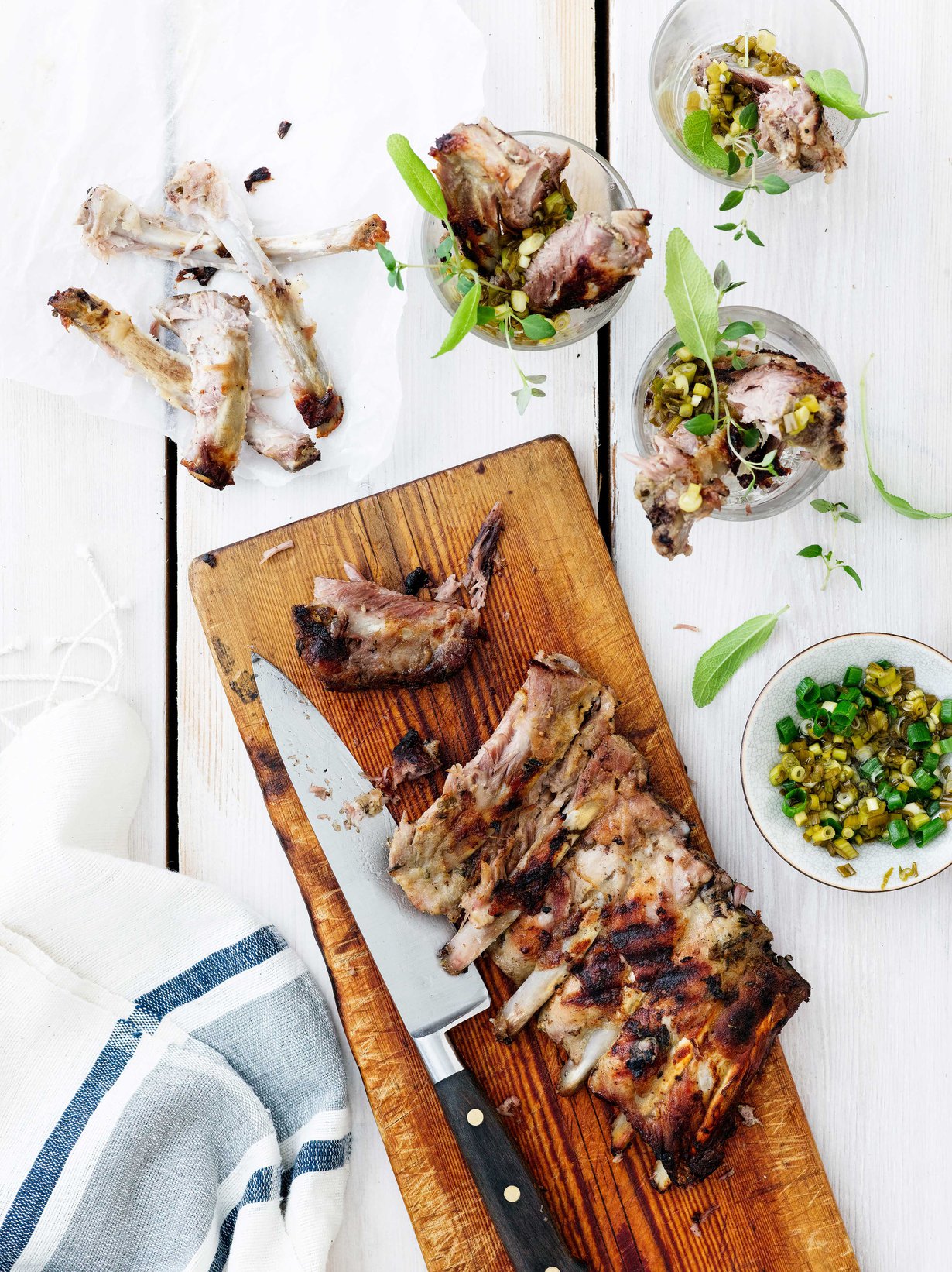 Yrttiset babyribsit ja pikkelöity kevätsipuli