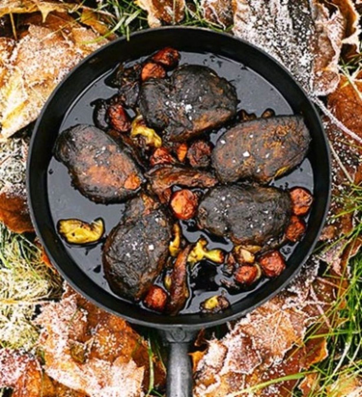 2. Nosta lihat  padasta ja kääräise alumiinifolioon. Tee kastike. Siivilöi paistoliemi ja kaada kattilaan. Murustele joukkoon mustapekka-tuorejuusto. Kiehauta. Lisää joukkoon tumma suuruste, kiehauta ja keitä pari minuuttia. Maista ja mausta tarvittaessa suolalla.
