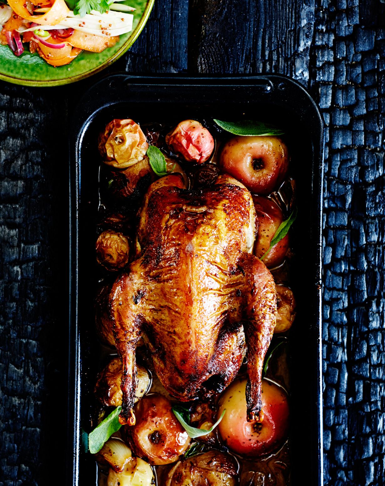 Siideri-omena-fasaanipata ja fenkoli-omenasalaatti