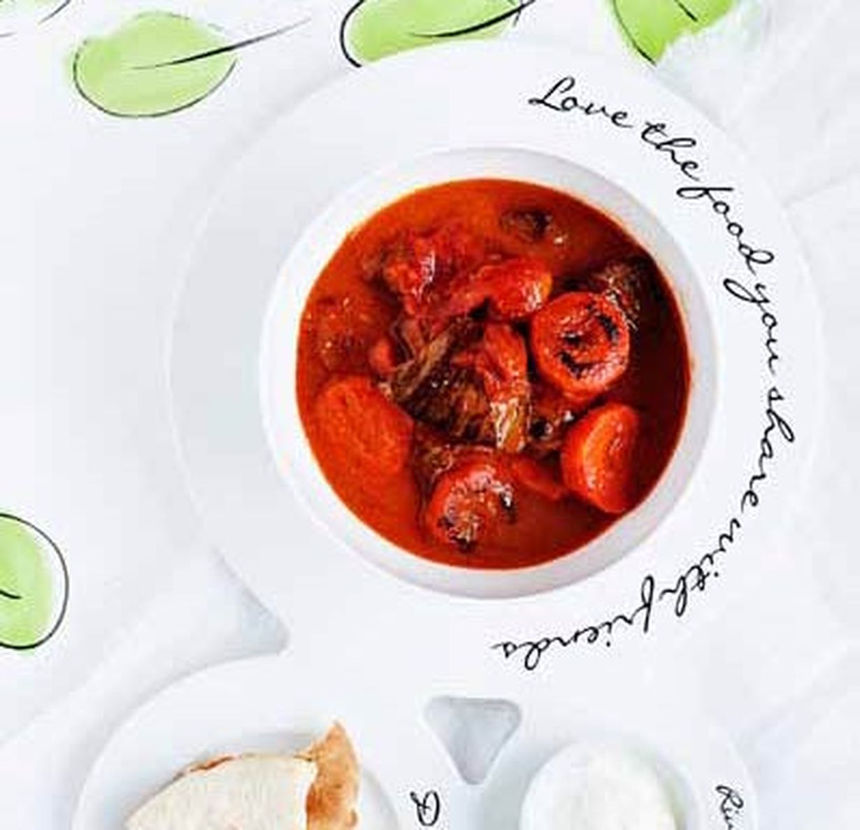 Poista currynlehdet ja aseta lihapata tarjolle keitetyn riisin, maustamattoman paksun jogurtin, raikkaan raasteen ja esimerkiksi naan-leivän kanssa.