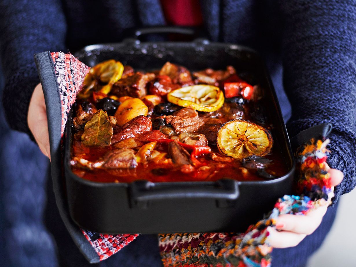 7. Kuumenna ruoka kiehuvaksi ja alenna lieden lämpö pienelle. Hauduta lihaa kaksi tuntia kannen alla. Voit myös hauduttaa padan 150-asteisessa uunissa. Tarkista välillä nesteen määrä ja lisää tarvittaessa vettä.