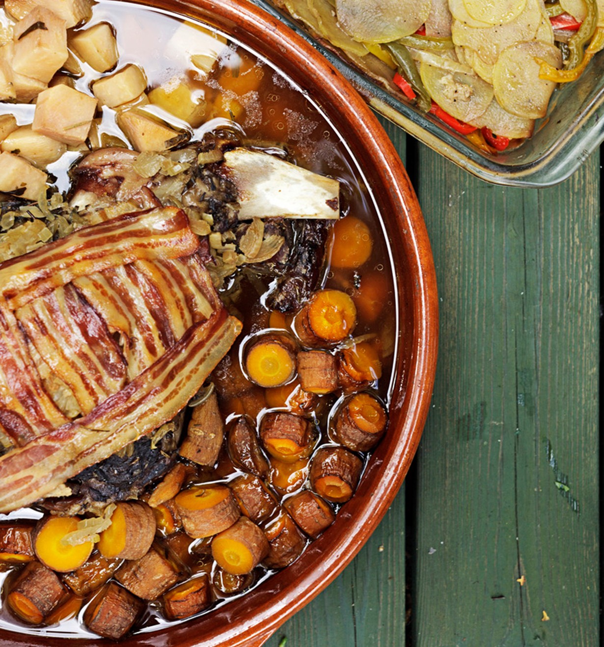 Halutessasi voit kypsentää kuoritut ja pilkotut lanttu- ja porkkanakuutiot samassa pussissa tai vuoassa. Jos kypsennät juurekset vuoassa, lisää nesteeksi olutta. Sulje pussi ja paista 150–175 asteessa 2½–3 tuntia.