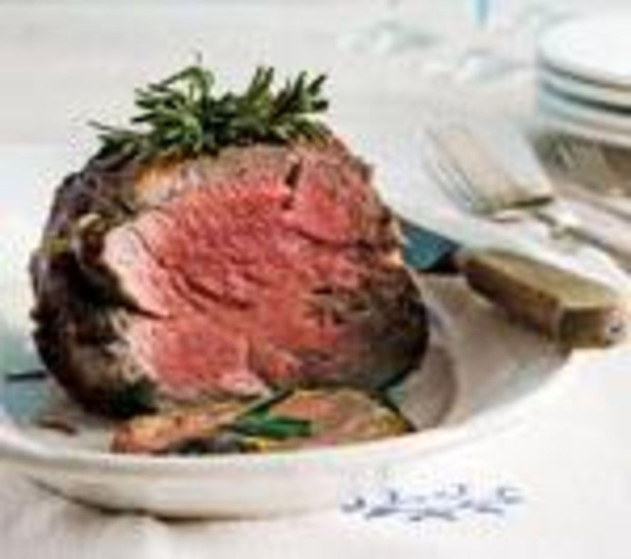 - Laita paistin paksuimpaan kohtaan lihalämpömittari. Nosta paisti pellille ja kypsennä sitä uunissa, kunnes lihan sisälämpötila on 60 astetta. Tällöin liha on mehevän vaaleanpunaista sisältä. Kypsymisaika on reilu tunti. (Jos haluat kypsempää lihaa, jatka paistamista, kunnes mittarin lukema on 68 astetta. Jos haluat täysin kypsän paistin, odota, kunnes lukema on 75 astetta).