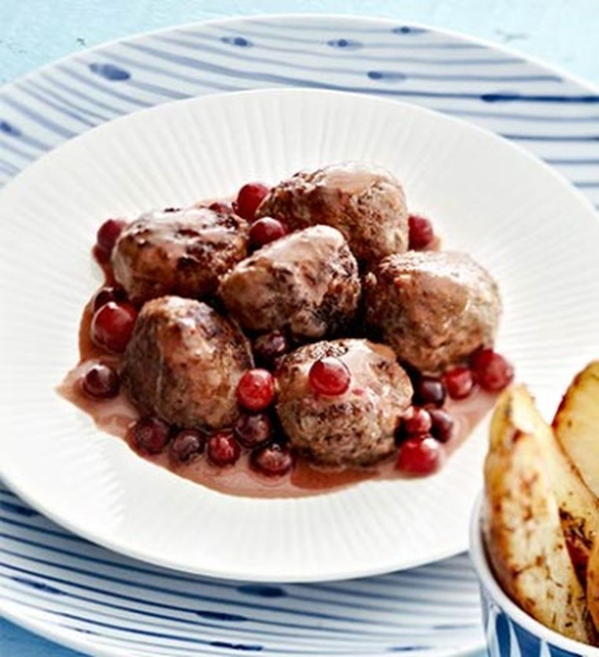 Tee kastike: kuumenna kastikepohja ja lisää jäiset karpalot. Keitä miedolla lämmöllä noin 10 minuuttia niin, että karpalot antavat makua kastikkeeseen. Siivilöi kastike ja siirrä takaisin kattilaan. Lisää sokeri ja kerma. Mausta suolalla ja pippurilla.