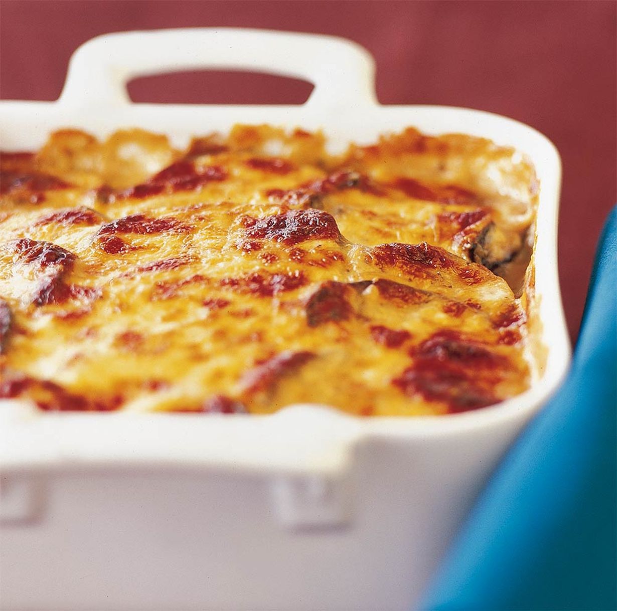 Ripottele päälle juustoraastetta. Paista 170 asteessa uunin keskitasolla 30-40 minuuttia. Anna ruuan vetäytyä 15-20 minuuttia ennen tarjoilua. Tarjoa lisäkkeenä vihersalaattia ja marinoituja oliiveja.