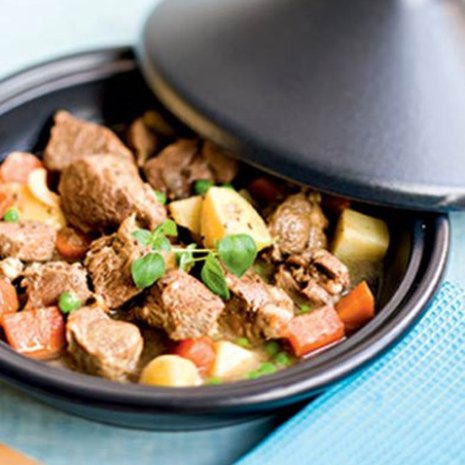 7. Laita kannella peitelty pata 200-asteiseen uuniin kypsymään tunniksi. Alenna sitten lämpö 150 asteeseen. Kypsennä ruokaa vielä puolisen tuntia tai niin kauan, että liha on mureaa. Ota kansi padan päältä ja anna ruuan olla uunissa sen aikaa, että pinta saa vähän väriä ja kastike kiehuu hieman kasaan.