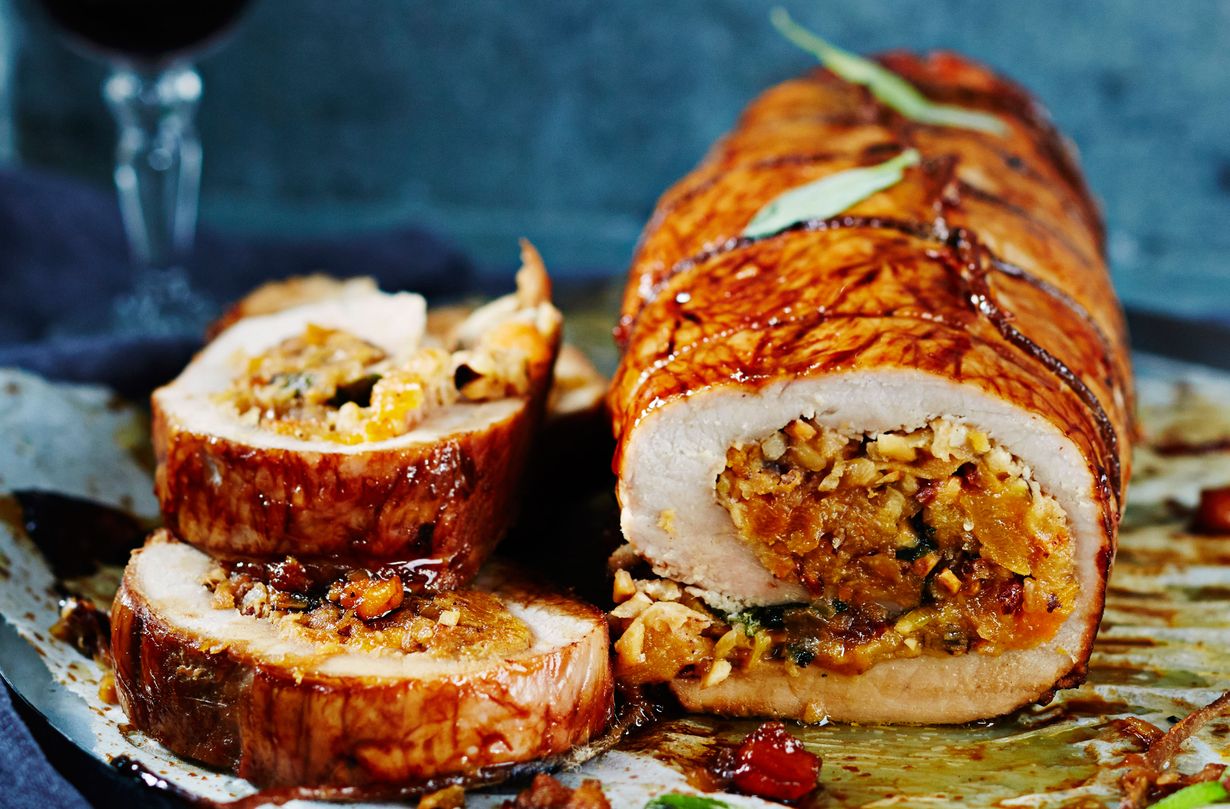Pähkinäinen ja hedelmäinen täyte tekee possunfileestä ihanan mehevää. Tämä lihaherkku valmistuu tunnissa, joten se sopii kiireisemmänkin joulupöytään.