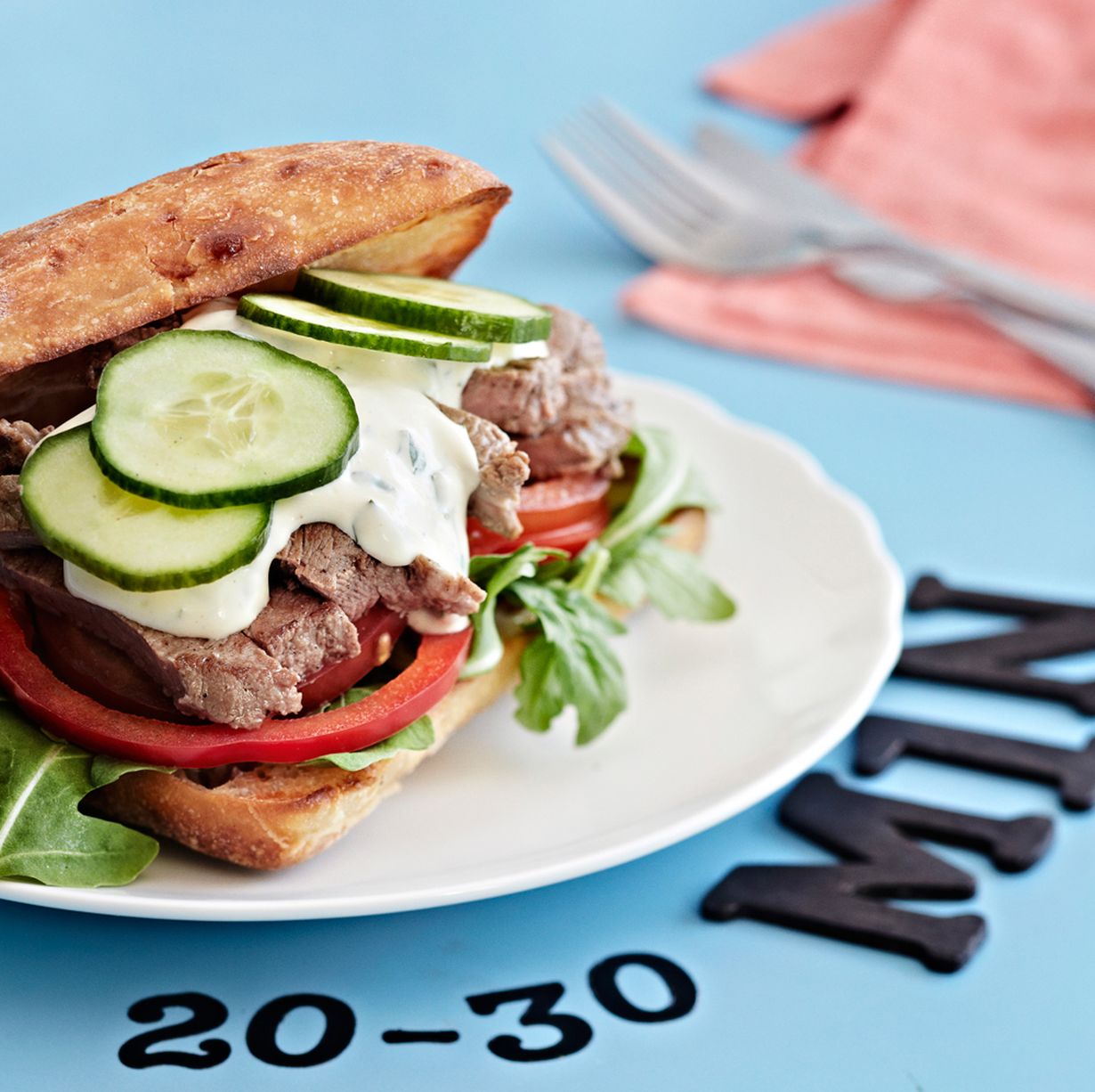 Ulkofileellä ja yrttikastikkeella täytetty ciabatta