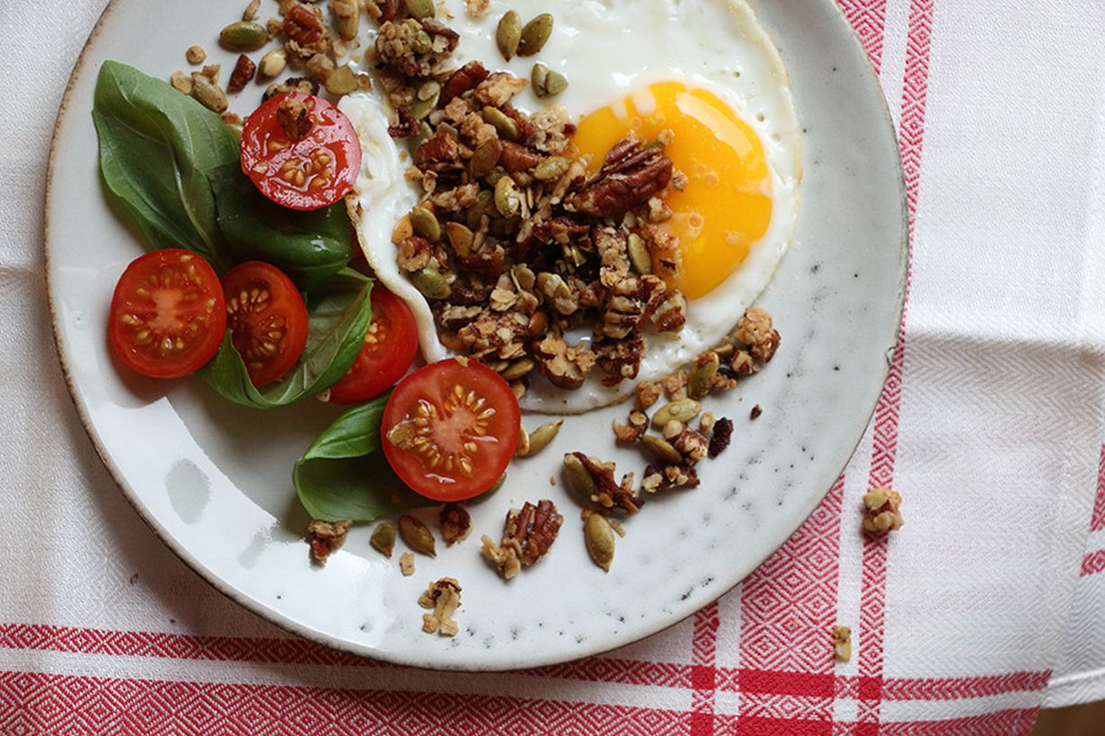Granola on ihana lisäke brunssille, koska sitä voi ripottaa vaikka minkä päälle. Kokeile paistettujen munien, munakkaan, salaattien tai piirakoiden päälle. Granola sopii hyvin myös sosekeiton päälle.