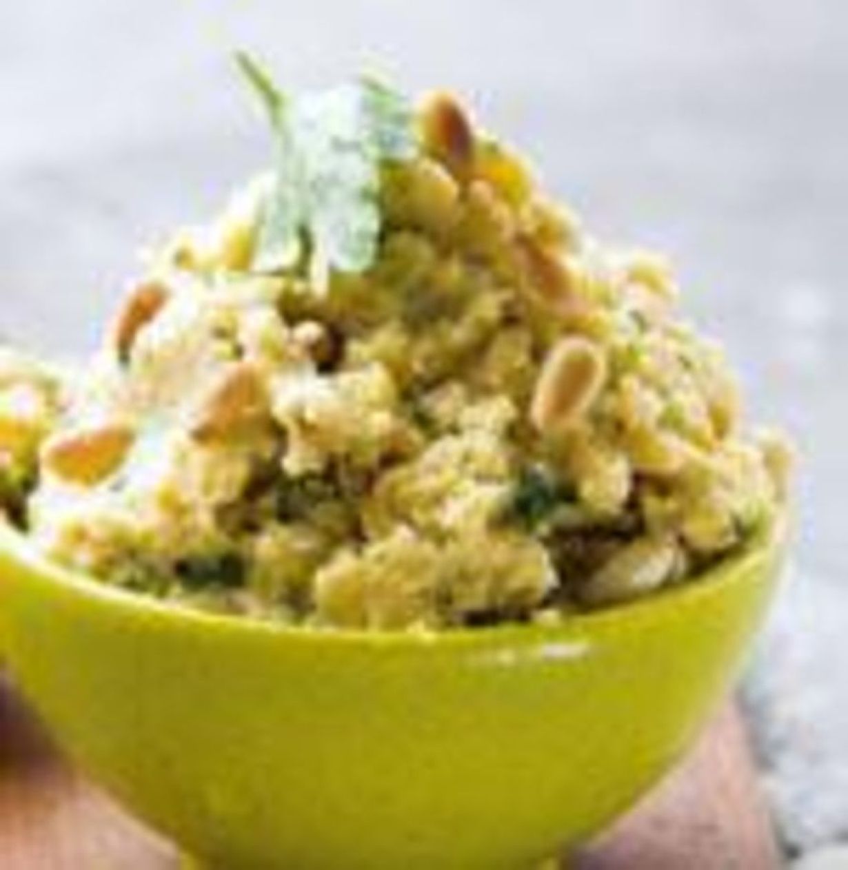 - Laita ne kikherneiden, sitruunamehun ja öljyn kanssa kulhoon. Ripottele joukkoon mausteet. Soseuta seos sauvasekoittimella.