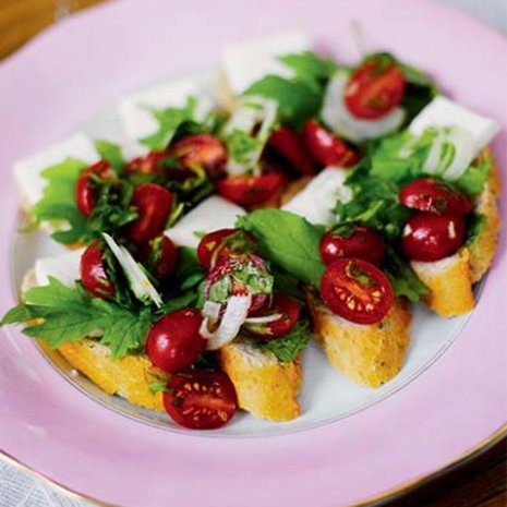 Kesähelteillä maistuu kevyt salaatti, jonka ainekset saat vaikka torilta. Saat salaatista vegaanisen vaihtamalla jogurtin kaurafraîcheen ja hunajan vaaleaan siirappiin.