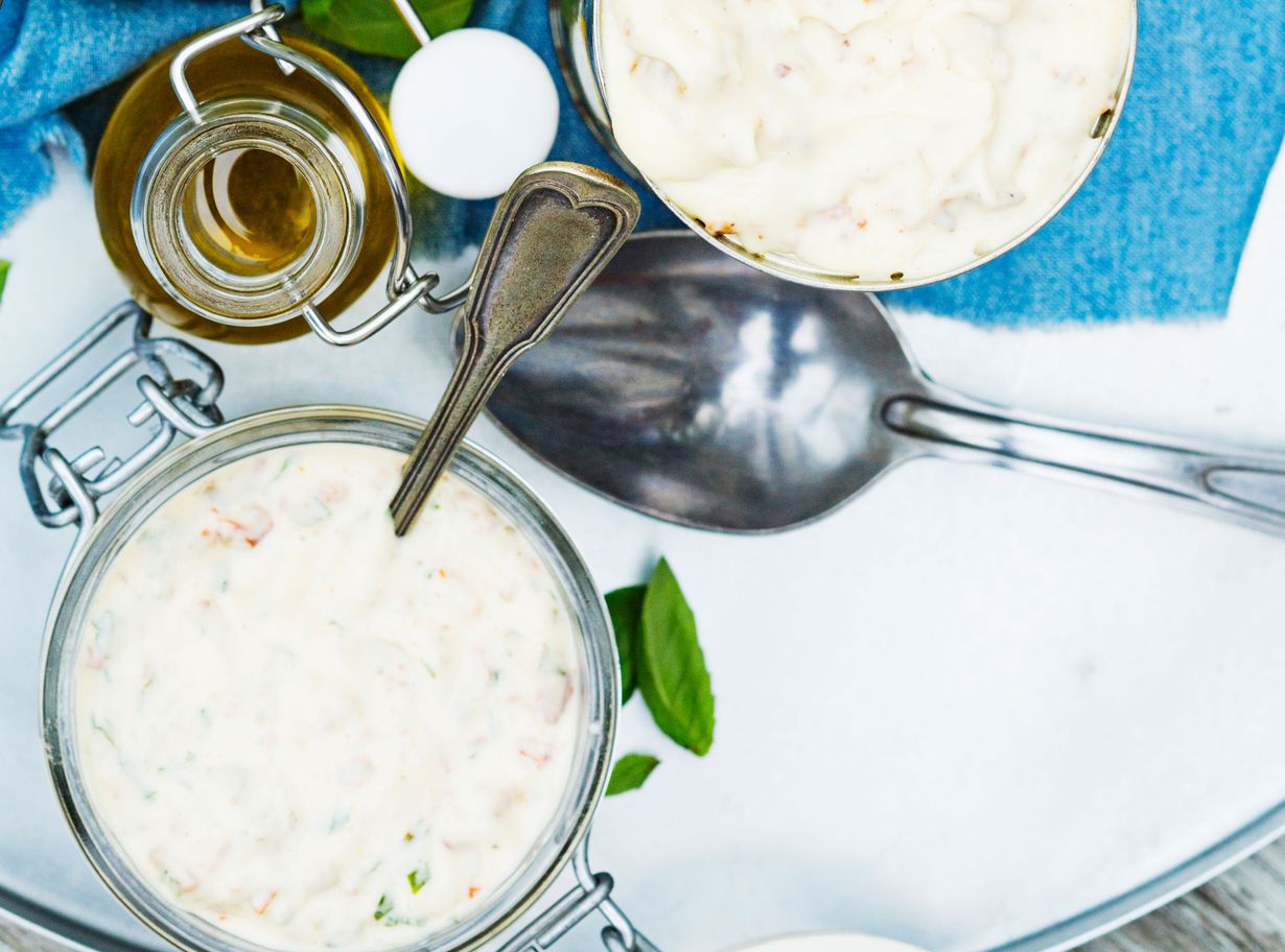 Vinkki! Voit käyttää kastikkeisiin kaupan majoneesia, mutta kotitekoisen majoneesin sekoitus on lähes yhtä nopeaa kuin purkin aukaisu.