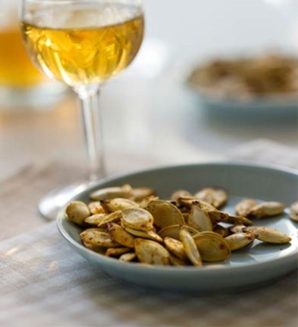 - Kerää siemenet talteen kurpitsan siemenkodasta. Puhdista siemenet ja anna niiden kuivahtaa. Sekoita öljy siementen joukkoon kannellisessa astiassa. Lisää chili, suola ja sokeri samalla kerralla ja ravistele purkkia, kunnes mausteet ovat tarttuneet siementen pintaan. Paahda kurpitsansiemenet kuivalla paistinpannulla, kunnes ne saavat hieman väriä.