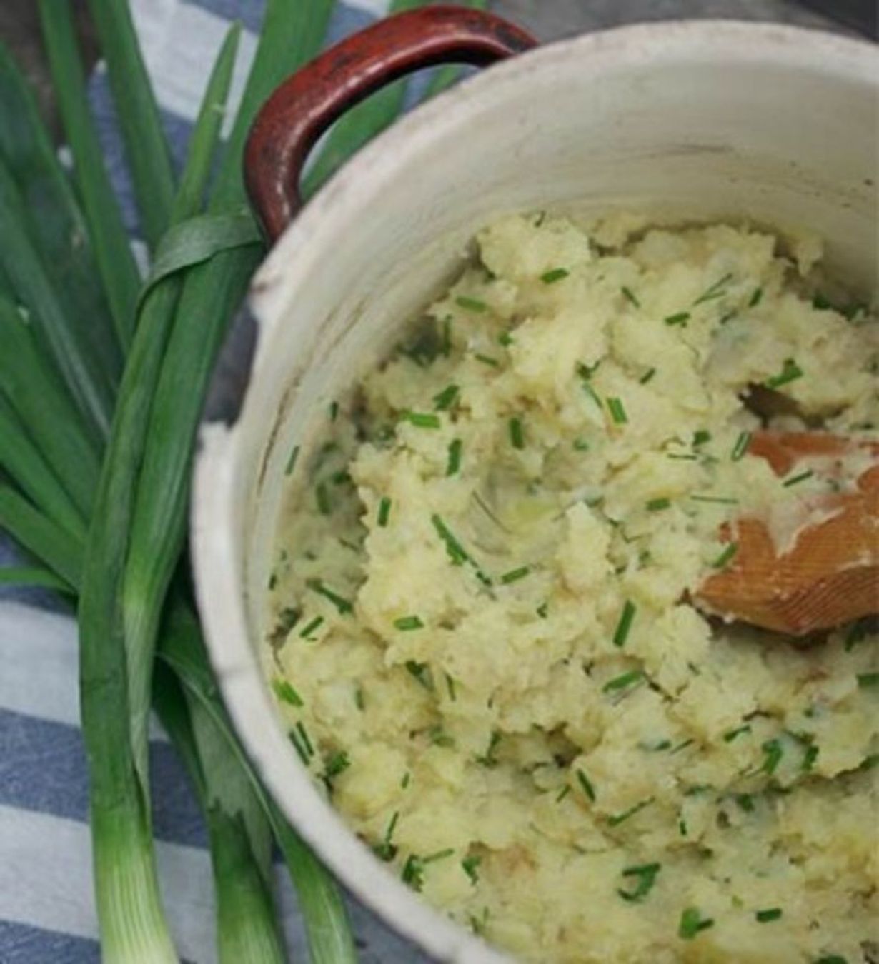 - Keitä perunat tillin kera. Kaada vesi pois, survo perunat ja lisää voi ja sitruunamehu. Laita uudelleen tulelle ja lisää yrtit ja suola.