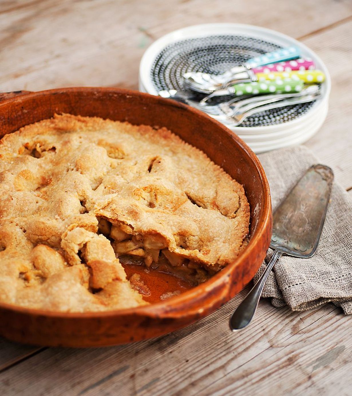 Leivo jälkiruuaksi pehmeä, amerikkalaistyyppinen omenapiiras. Piirakka paistetaan syvässä vuoassa. Jos sinulla ei ole syvää piirasvuokaa, voit käyttää metallisia kertakäyttövuokia, joita saa ruokakaupoista.
