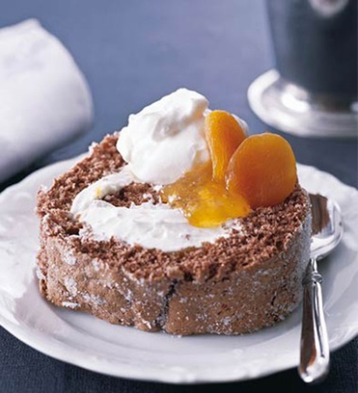 Perinteinen unelmatorttu saa uutta makua aprikoosihillosta ja inkiväärillä maustetusta kerma-rahkasta.