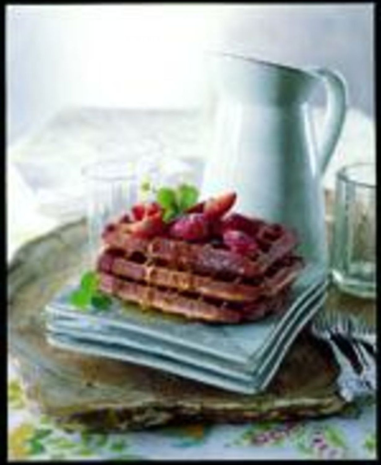 - Valmista löysähkö lettutaikina ja paista taikinasta kuumassa vohveliraudassa vohveleita.
