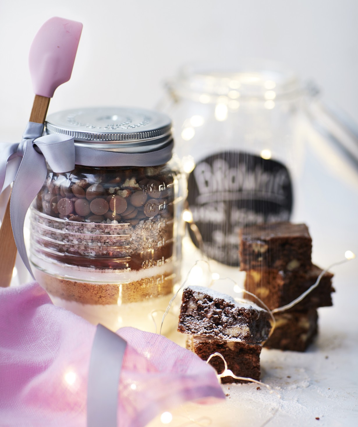Solmi browniepurkin kylkeen pieni leivontaväline: nuolija, vispilä tai mittasarja. Täydennä paketti leivontaohjeella ja kauniilla rusetilla.