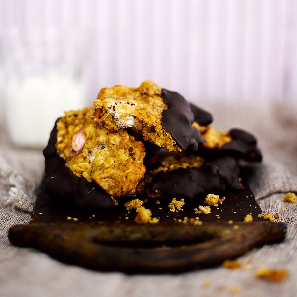 Cookiet kätkevät sisäänsä pähkinöitä, kauraa ja rapsahtelevia ranskanpastilleja.