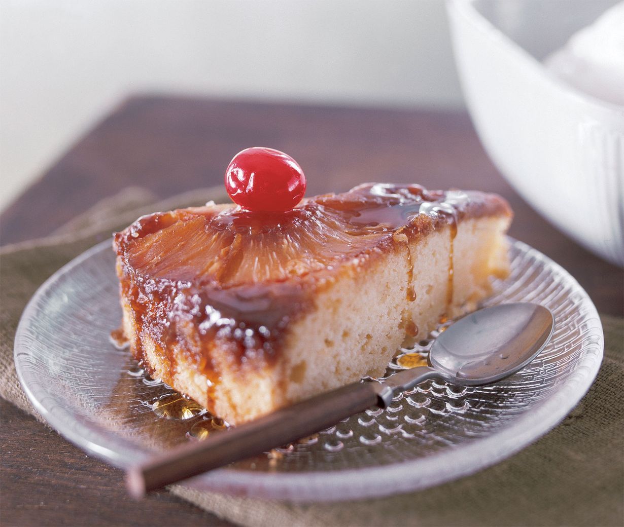 - Levitä taikina hedelmien päälle. Kypsennä 200 asteisen uunin keskitasolla noin 35 minuuttia. Anna kakun vetäytyä hetken. Keikauta tarjoiluastialle.