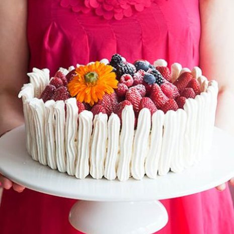 - Levitä kermavaahtoa kakun pinnalle ja sivuille. Koristele kakun pinta vielä myrkyttömillä orvokeilla.