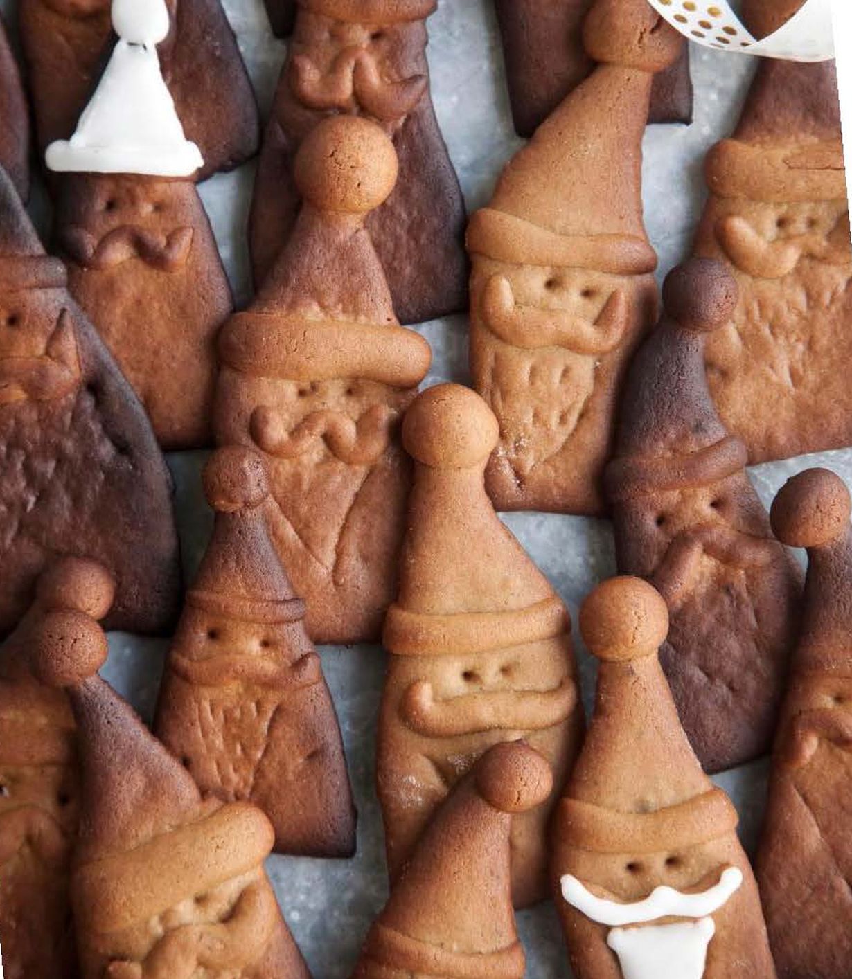 - Nosta kolmiot leivinpaperille ja taivuta ylin kärki hiukan kaarevaksi. Pyöritä jäljellä olevasta taikinasta hattujen kärkiin pallot.