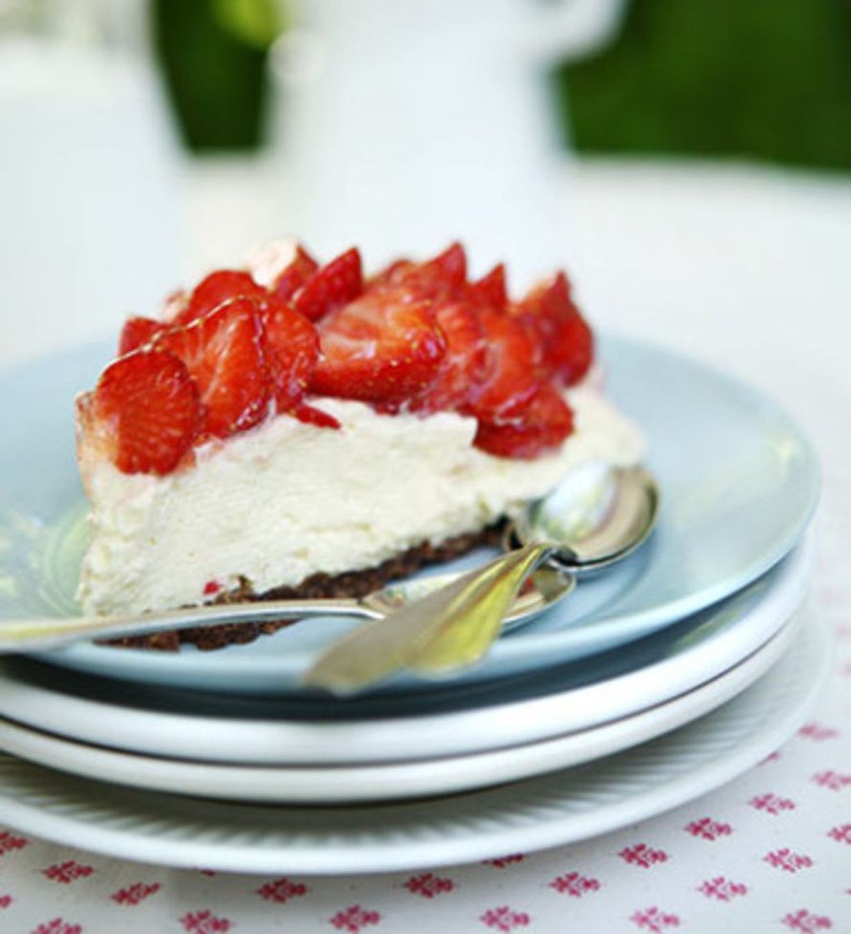 - Leikkaa mansikat lohkoiksi ja aseta tortun pinnalle.
