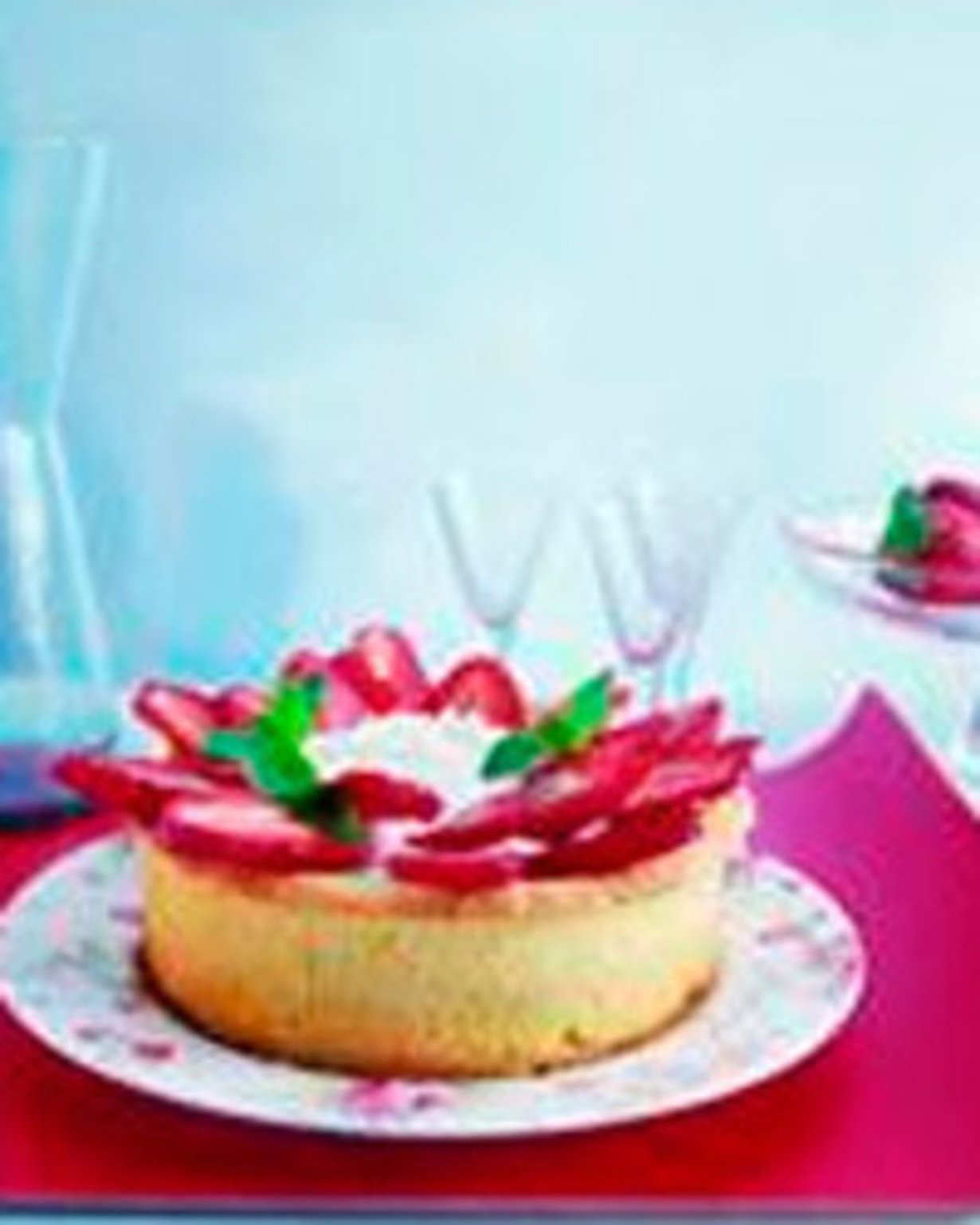 - Pane piirakkapohjalle juuri ennen tarjoamista puolet liköörivaahdosta. Pane päälle kolmasosa viipaloiduista mansikoista, peitä kerros lopulla liköörivaahdolla ja koristele kauneimmilla mansikkaviipaleilla. Tarjoa loput mansikat erikseen.