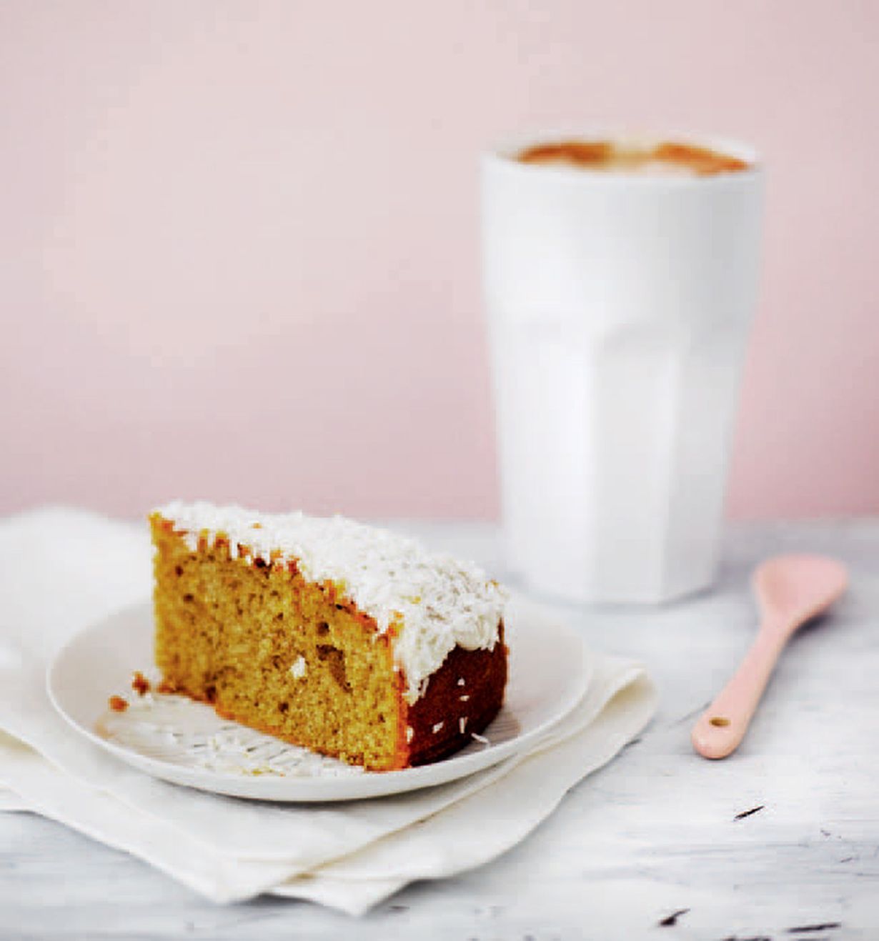 Kuivakakku saa kostutuksen kahvista ja appelsiinista.