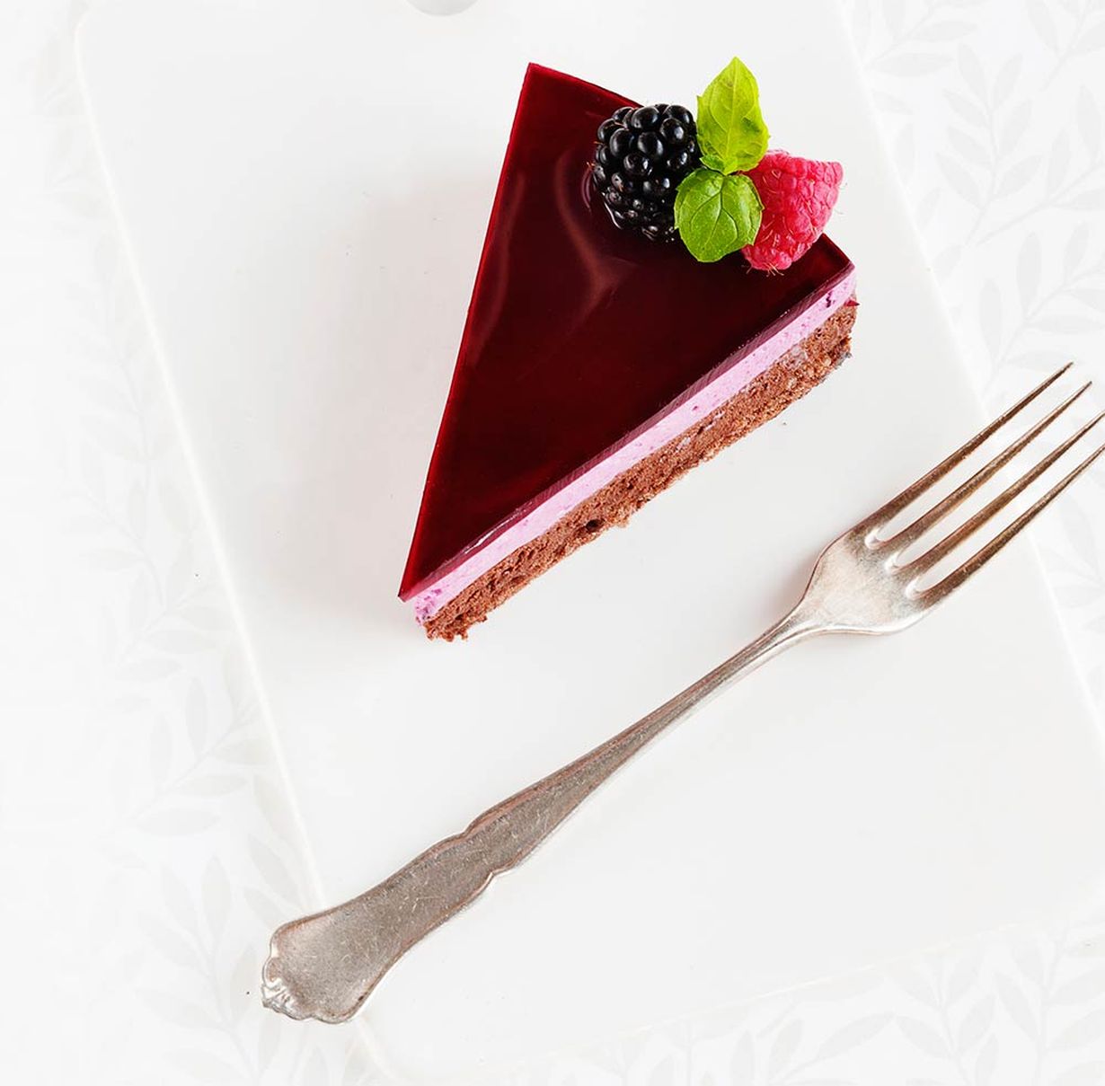 - Liota liivatelehtiä 10 minuuttia kylmässä vedessä kiillettä varten. Kiehauta herukkamehu. Sulata puristellut liivatelehdet mehuun. Jäähdytä viileäksi. Kaada kiille vuokaan kakun päälle ja anna hyytyä 3 tuntia jääkaapissa. Koristele marjoilla.