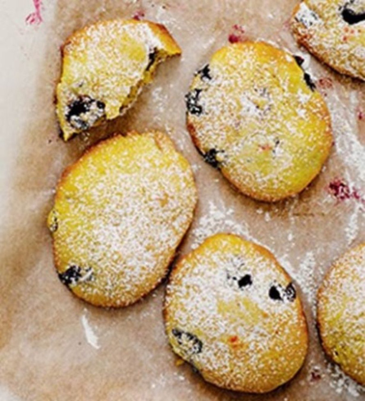 Vinkki! Jos käytät pakastemustikoita, lisää ne taikinaan jäisinä. Pakastemustikat värjäävät keksit sinisemmiksi sulaessaan uunissa.