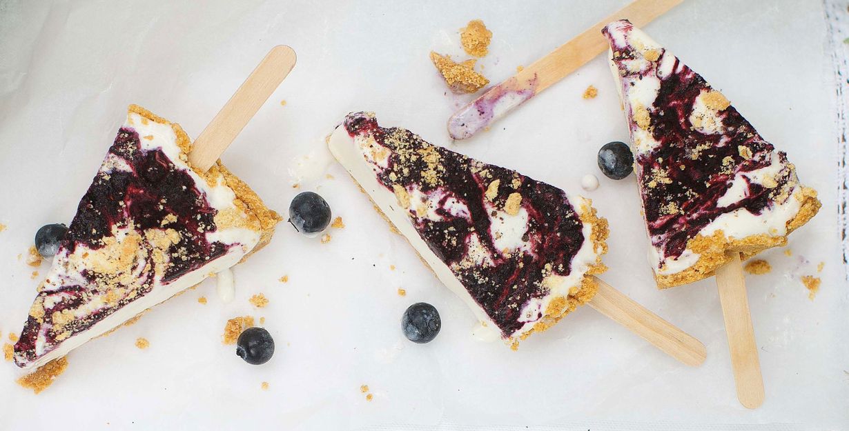 Mehevältä mustikkapiirakalta maistuva jäätelö tuo viilennystä hellepäivään ja lohtua sateeseen.