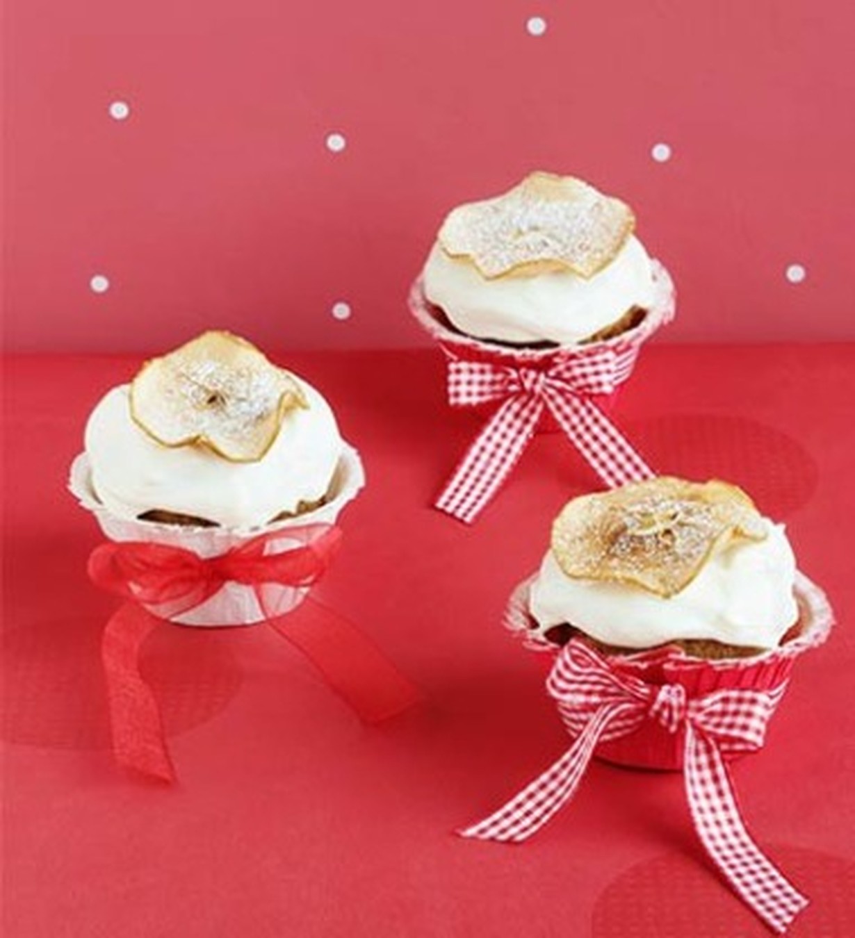 Vinkki! Omenakoristetta varten leikkaa omenasta kuorineen hyvin ohuita siivuja. Laita siivut uunipellille leivinpaperin päälle. Ripottele päälle hieman sokeria ja kanelia. Kuivata uunissa 50 asteessa 4–6 tuntia. Siivilöi lopuksi pinnalle tomusokeria.