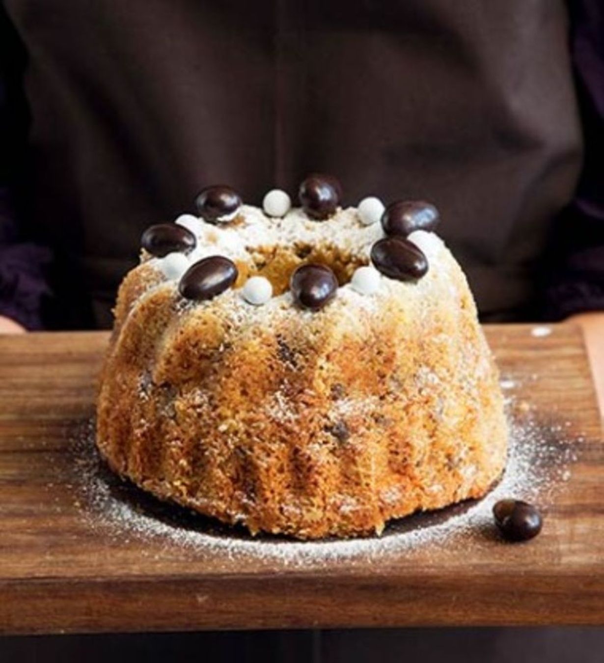 - Kaada taikina kakkuvuokaan. Paista uunin alatasolla noin 45 minuuttia tai kunnes kakku on kypsä. Anna kakun jäähtyä vuoassaan 5–10 minuuttia ennen kumoamista.