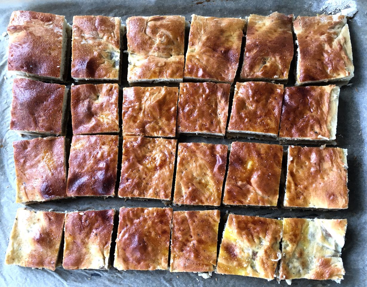 Tämä pullapohjainen omenapiirakka on kopio suolaisesta peltilihapiirakasta. Ohuiden taikinalevyjen välissä on kanelilla maustettua omenasosetta.