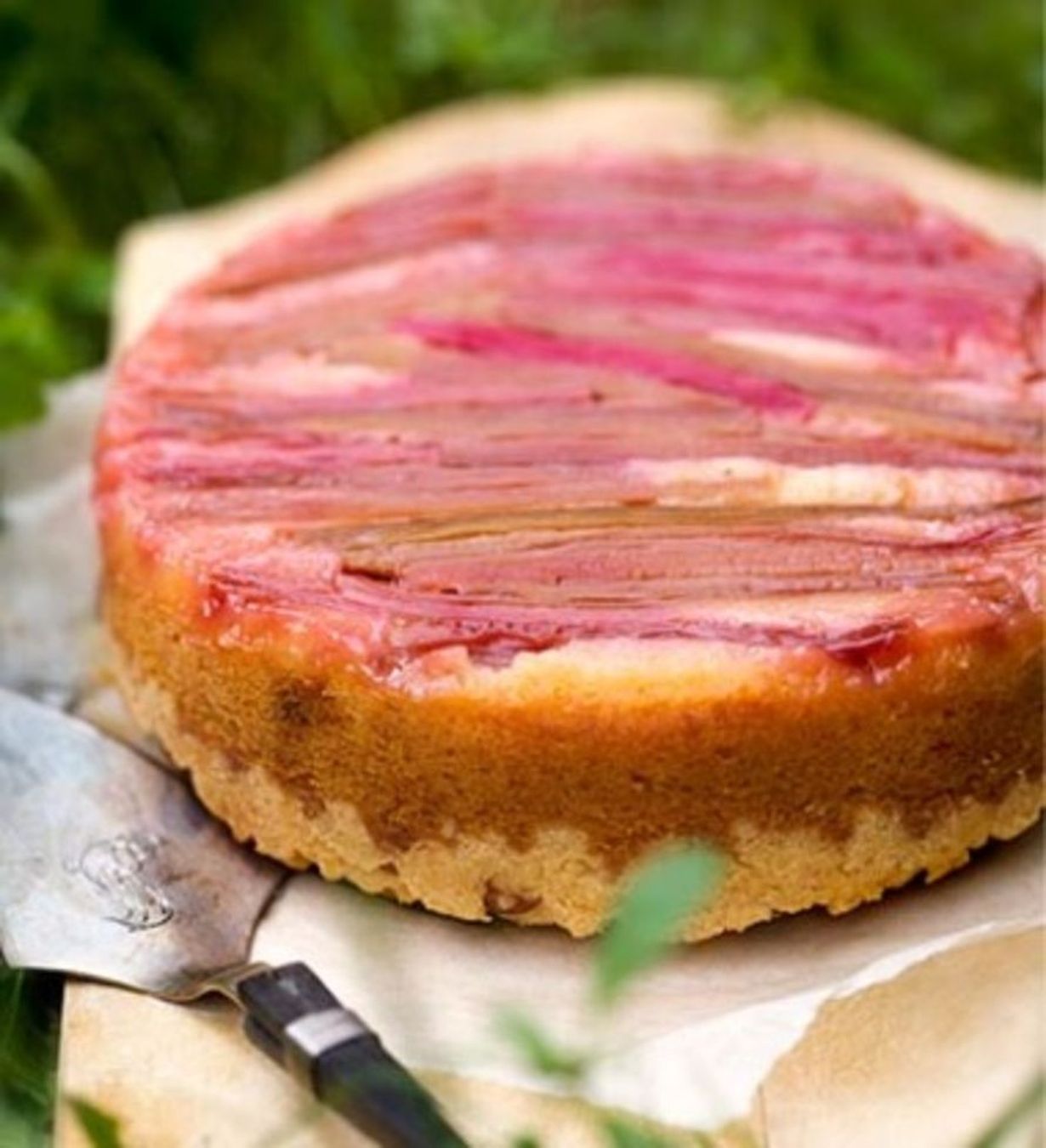 - Anna kakun jäähtyä noin 10 minuuttia ennen kumoamista, jotta raparperipinta ehtii hiukan jähmettyä. Älä kuitenkaan seisota liian pitkään, ettei makea raparperiseos kuivu vuokaan kiinni. Tarjoa vaniljakastikkeen tai -jäätelön kanssa.