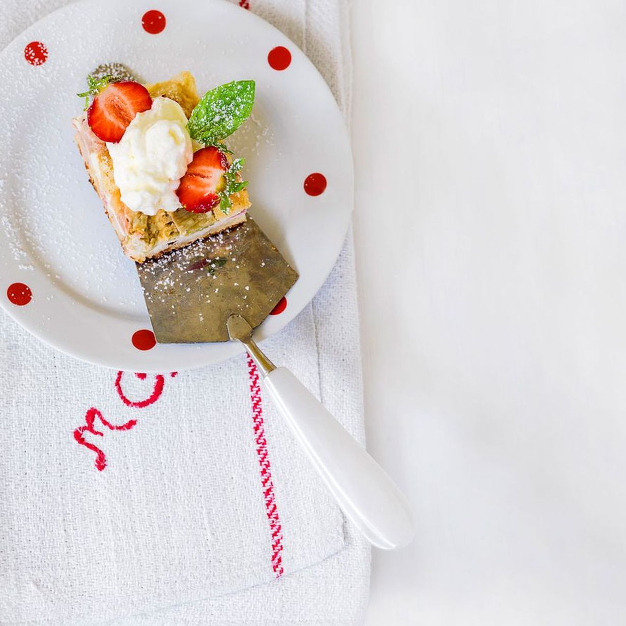 Tarjoa raparperipiirakka vaniljajäätelön tai kermavaahdon ja mansikoiden kanssa.