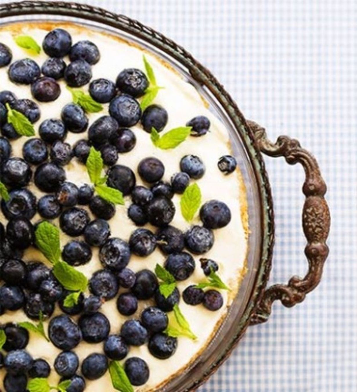 Ranskankerma ja hillomainen mustikkatäyte tekevät tästä piirakasta ihanan täyteläisen.