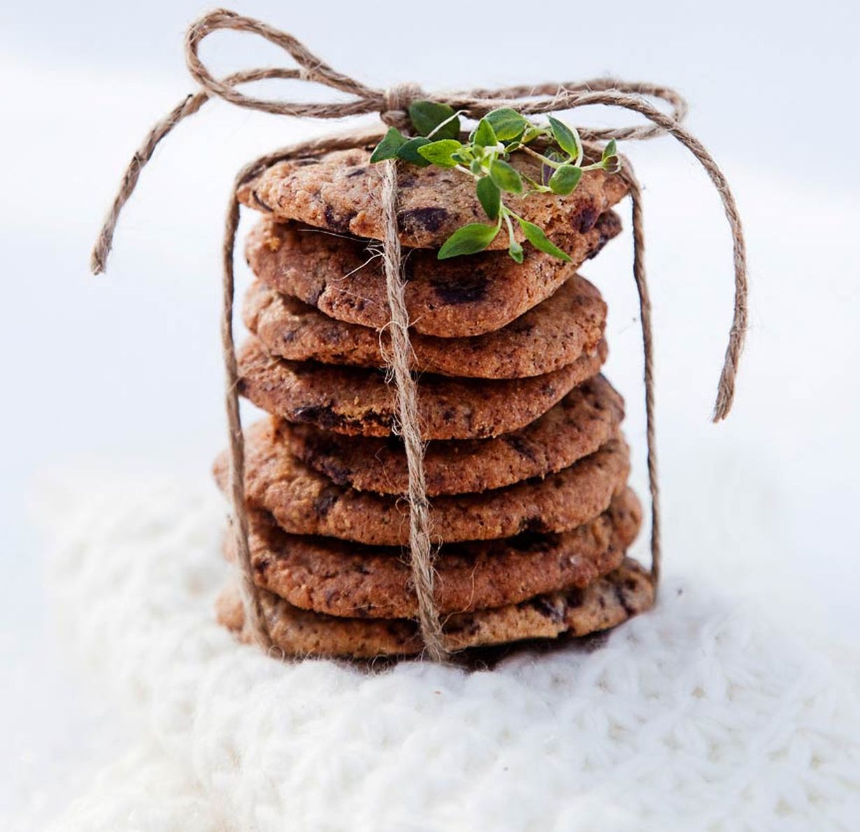 Kekseissä yhdistyvät suolainen ja makea. Juju on tuoreessa timjamissa.