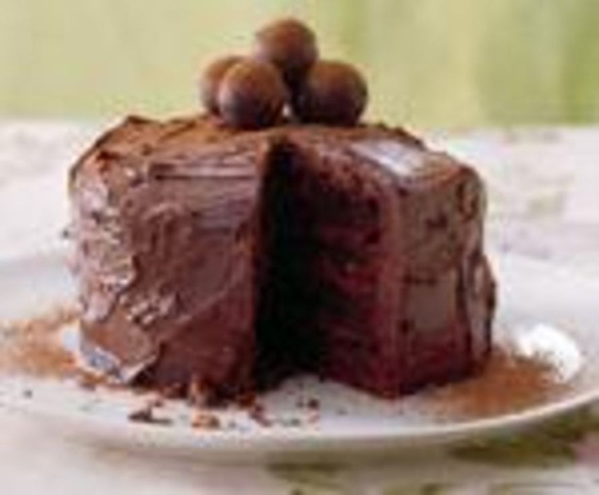 Vinkki! Kakkupohjan voi valmistaa etukäteen pakastimeen. Kakusta tulee mehevämpi, jos sen täyttää edellisenä päivänä ja säilyttää muovipussissa jääkaapissa. Tällöin valmista ensin puolikas annos tryffeliä täytettä varten. Kuorruta kakku vasta tarjoilupäivänä toisella puolikkaalla tryffeliä, ettei se muutu harmahtavaksi jääkaapissa.