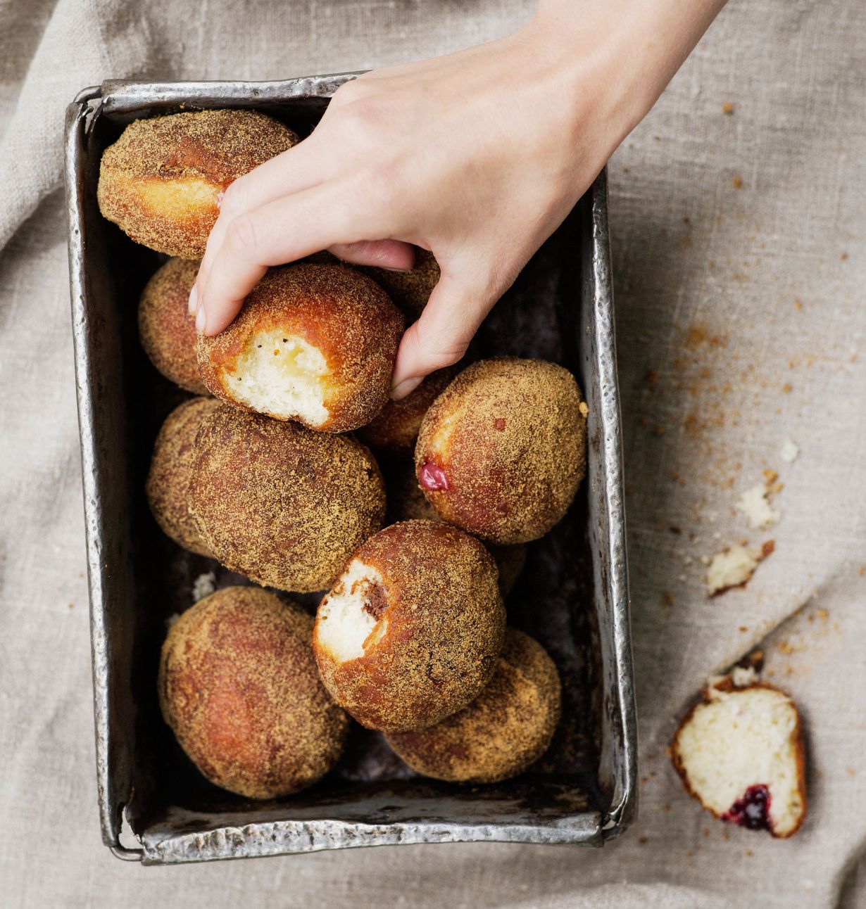 - Kuumenna öljy paksupohjaisessa kattilassa 170-180-asteiseksi. Laita sokeri vahvaan pakastepussiin. Kypsennä muutama munkki kerrallaan kauniin ruskeaksi, 1-2 minuuttia molemmin puolin. Nosta lautaselle talouspaperin päälle ja ravista sokerissa vielä lämpimänä.