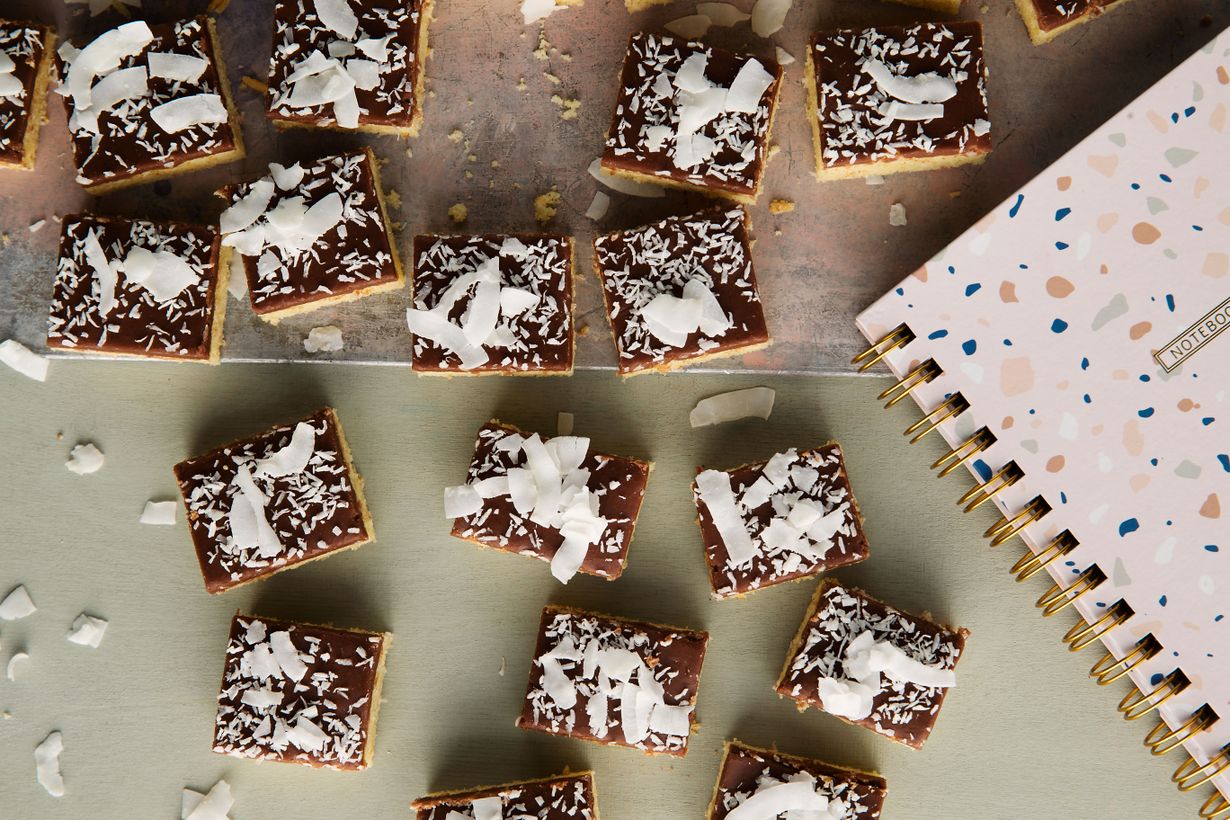 Kotitaloustuntien isoin hitti olivat mokkapalat tai vaaleapohjainen tuulomantorttu. Kermaviilin ansiosta pohja on ekstramehevä. Paista se juuri ja juuri kypsäksi ja jaa levy pieniksi makupaloiksi.