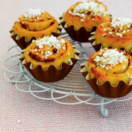 - Tarjoilupäivänä notkista tyrnihilloa vedellä ja vedä epämääräisiä raitoja teelusikalla kakun pinnalle. Voit kietaista kakun reunaan nauhan ja ottaa sen pois juuri ennen tarjoilua.