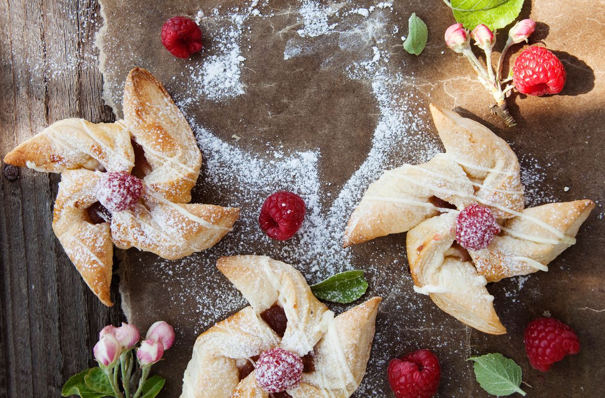Suussa sulavassa voitaikinahyrrässä maistuvat raparperi ja omena. Vielä pikaisemmat leivokset saat, kun oikaiset käyttämällä valmista hilloa.